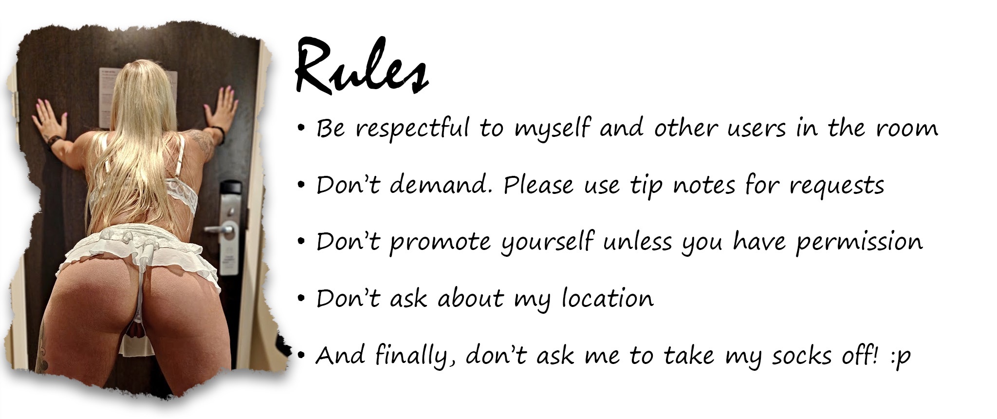 Blow a Kiss7If You Love Me11Smoke16Spank Ass x127Suck Finger37Wiggle Butt46Nipple Clamps49Buy Me Dinner53Silence Me For 1min58Un Silence Me59Flash Tits61Turn Domi On62Doggy Pose68Spread Ass72Play With Nipples89Flash Pussy93Close Up Pussy97Spank 10 Times101Doggy Pose Pussy129Ultra High Vibes 2min Dom